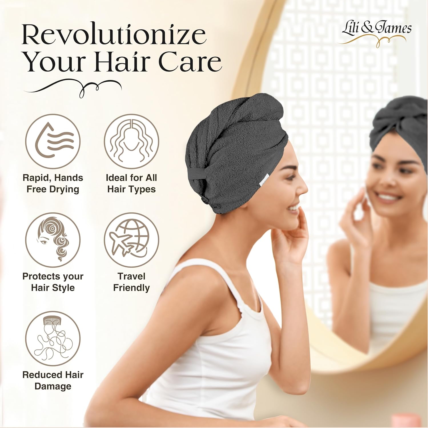 Be the first to review “Lili&James 100% Cotton Hair Towel Wrap Quick Dry Super Absorbent Turban Head Wrap for Women/Kids/Men with Double Button, Anti Frizz, Hair Cap for Curly, Long & Thick Hair (Dark Grey)” Cancel reply